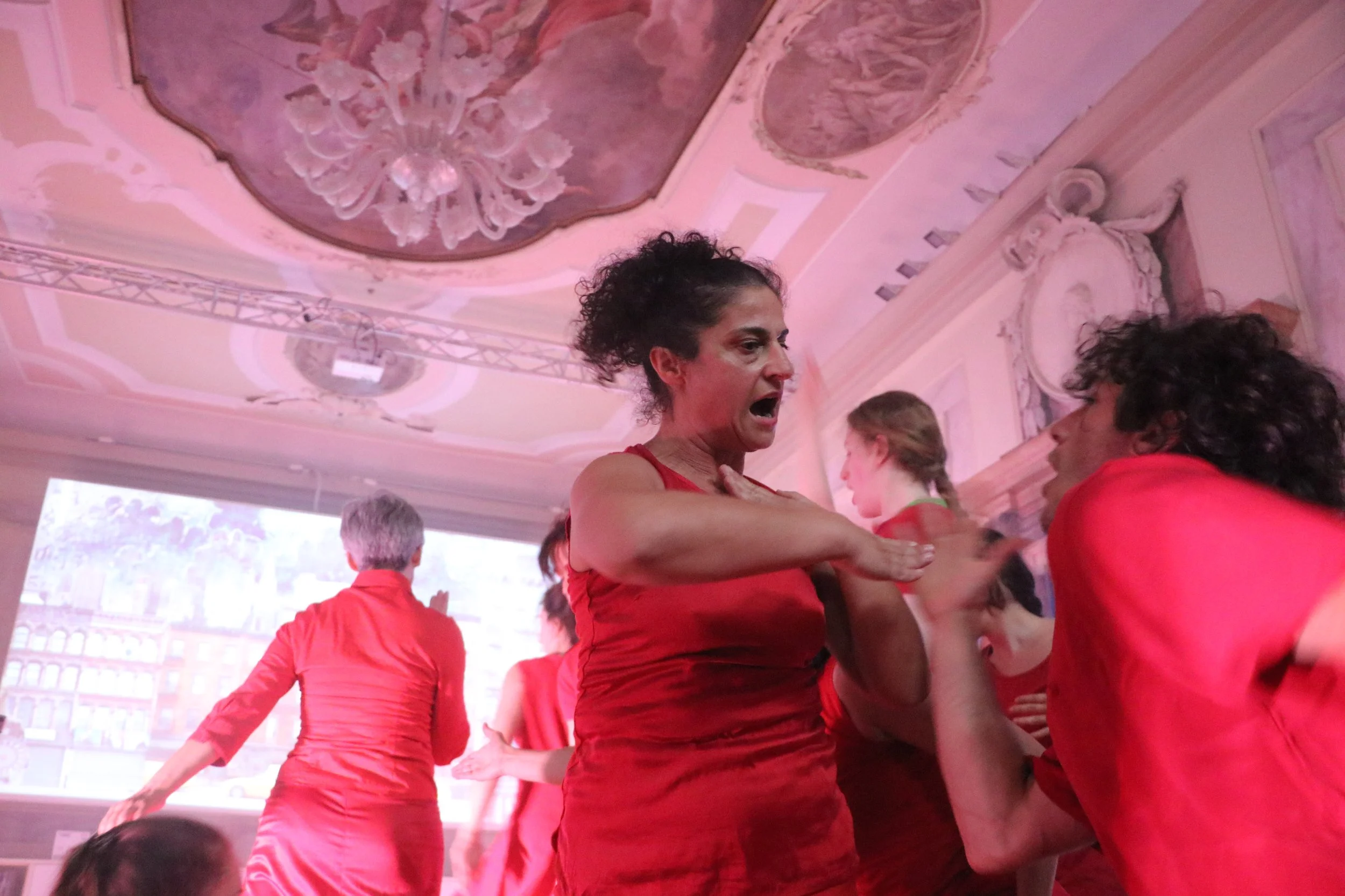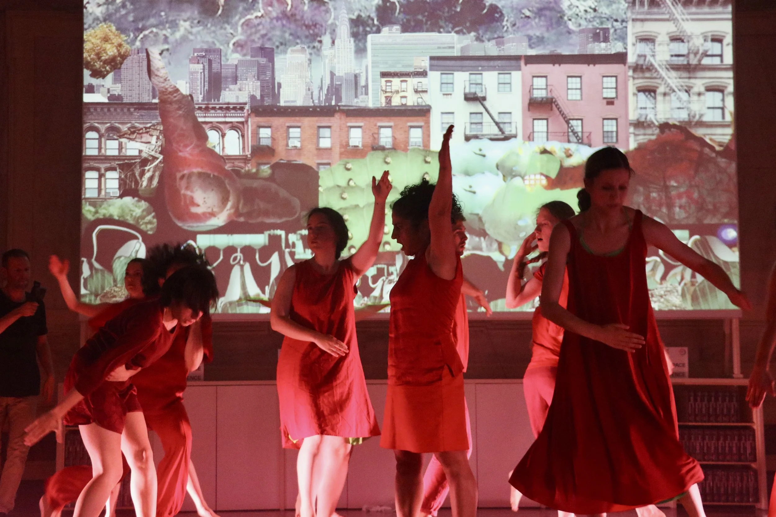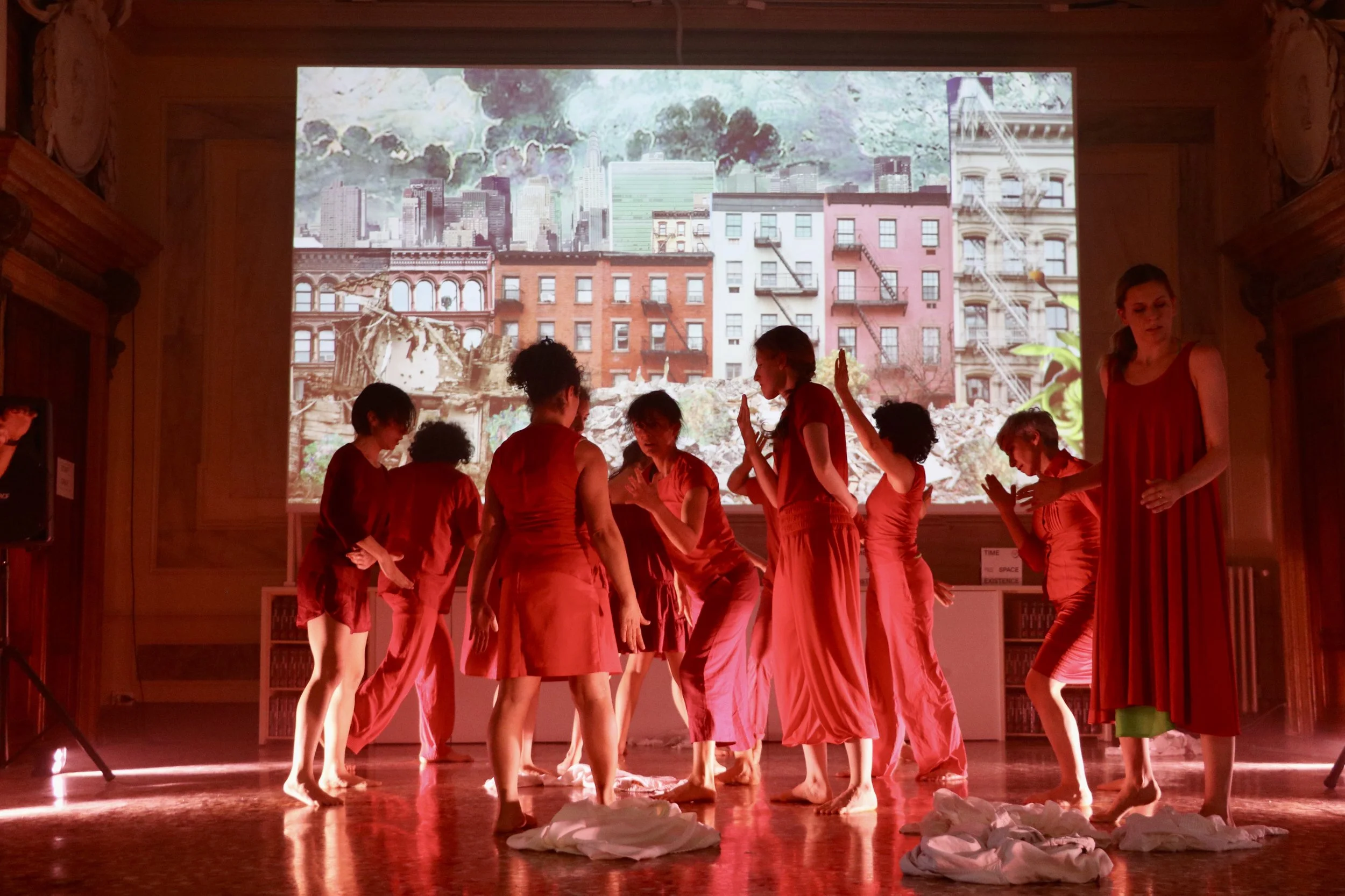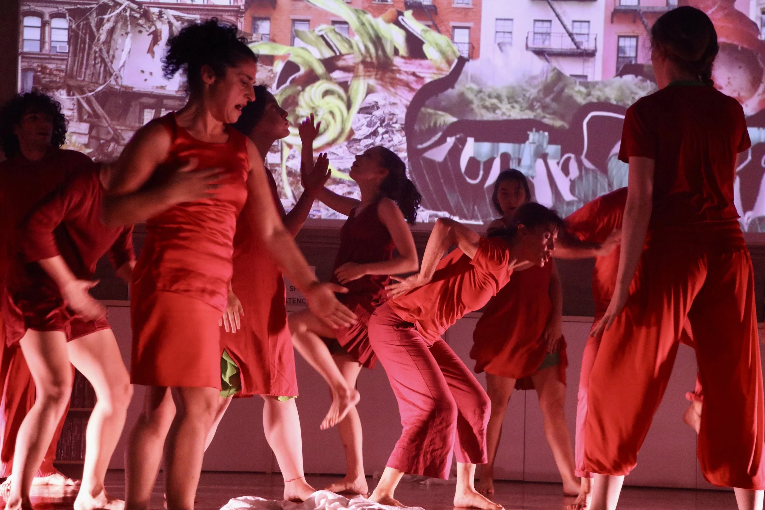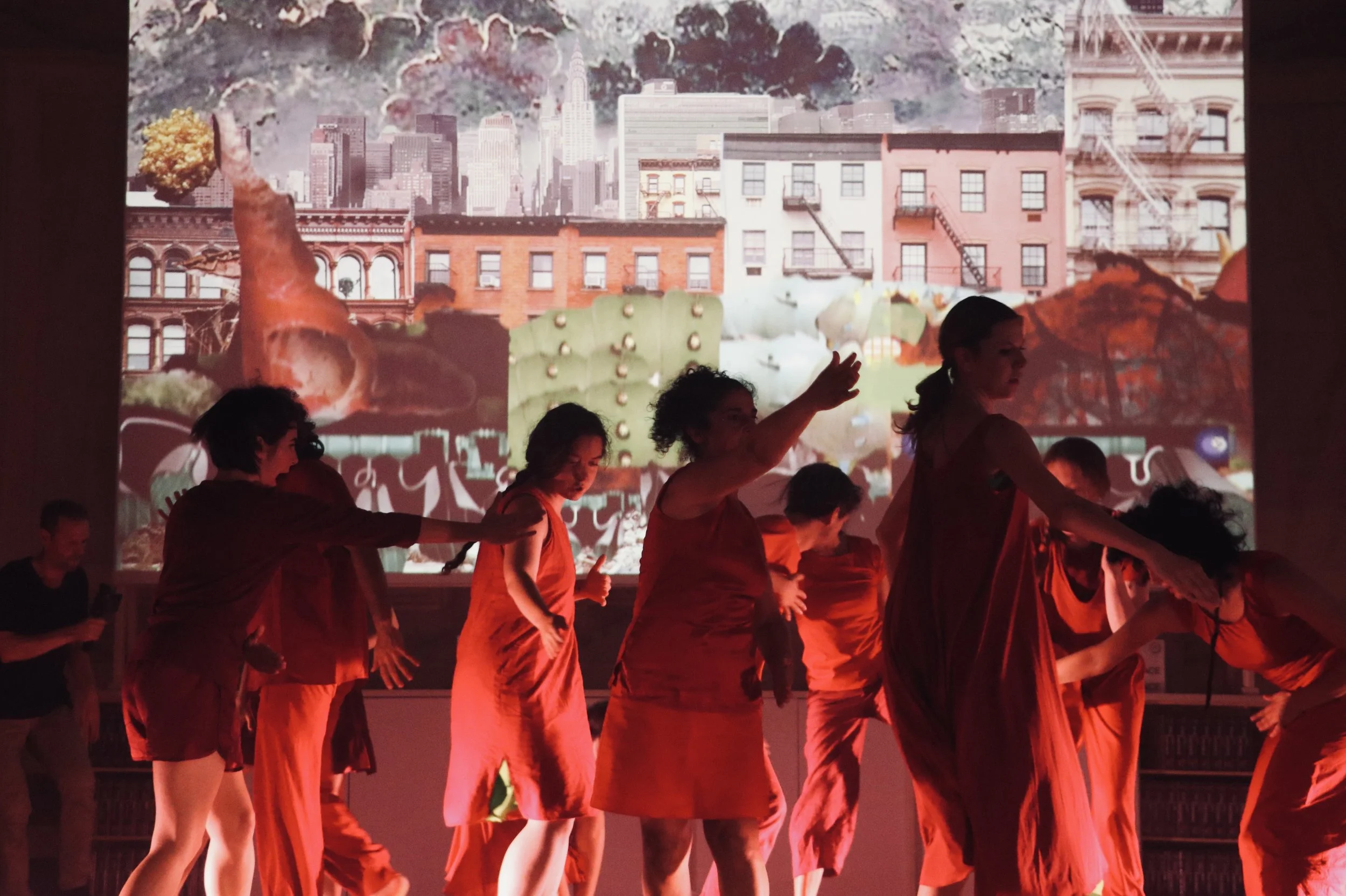 ACT FOUR: BALANDO. We can no longer walk. We can only dance. Moving in curves, tangents, and parabolas, we leave our homes and gather in the forest-street for joyous reaffirmation of life.